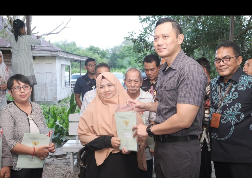 Masyarakat merasa senang dan bangga saat menerima sertifikat tanah dari Menteri Agraria dan Tata Ruang/Kepala Badan Pertanahan Nasional (ATR/BPN), Agus Harimurti Yudhoyono (AHY).